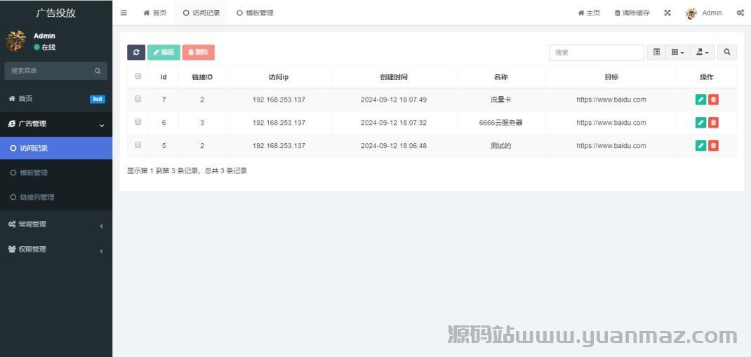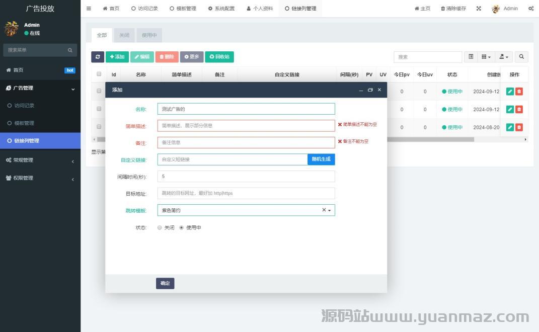 广告跳转统计系统源码 | 实时监控分析平台 | 支持自定义页面与链接备注