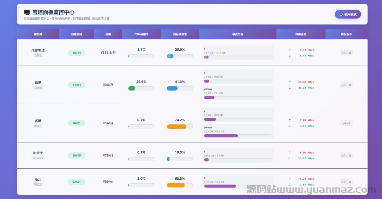 【📋】一款轻量实用的服务器监控方案,基于AI生成与宝塔接口,助您高效实现服务器状态可视化监控。