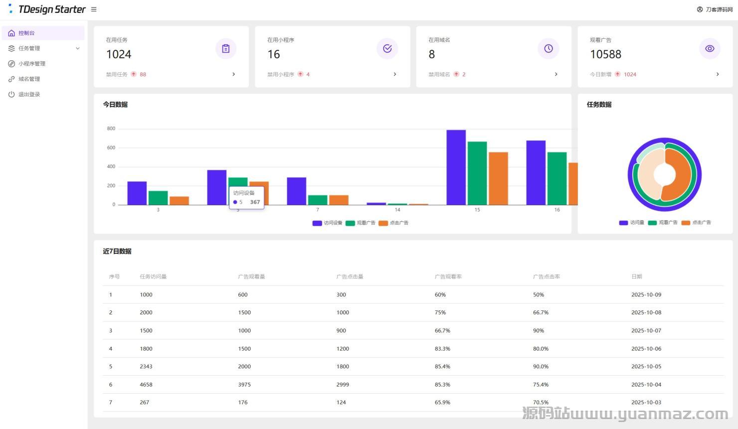 一套完整的广告变现与任务管理解决方案,采用前后端分离架构设计,助力私域流量高效变现。