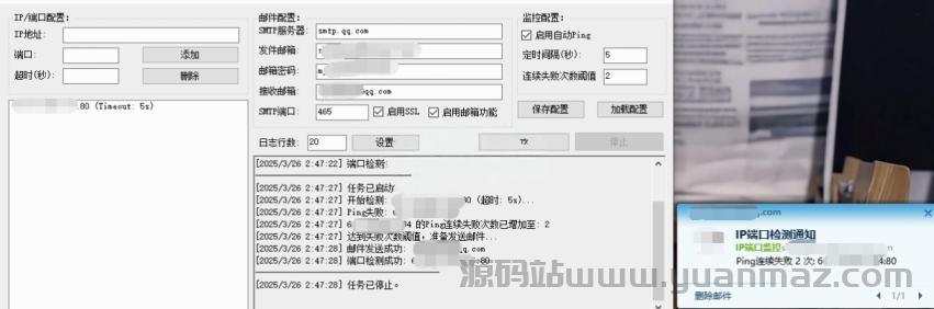 服务器IP端口监控工具 - 无视禁Ping,支持邮件告警 | 免费下载