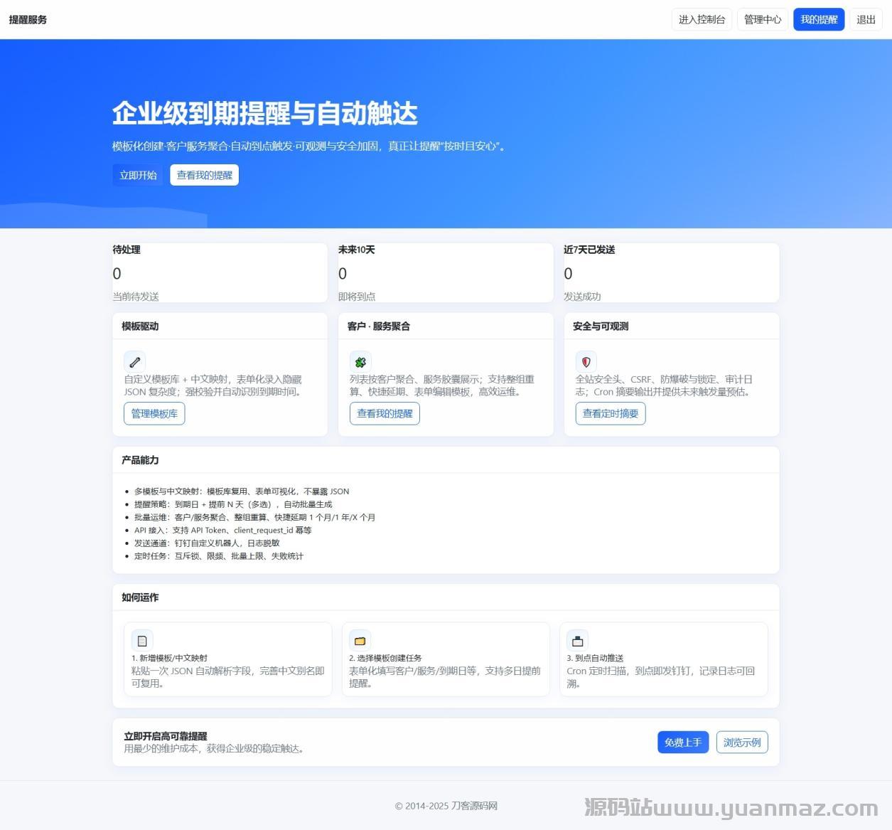 专为企业打造的智能业务提醒平台,通过钉钉机器人实现网站业务状态的自动化推送,让团队协作更高效、信息传递更及时。