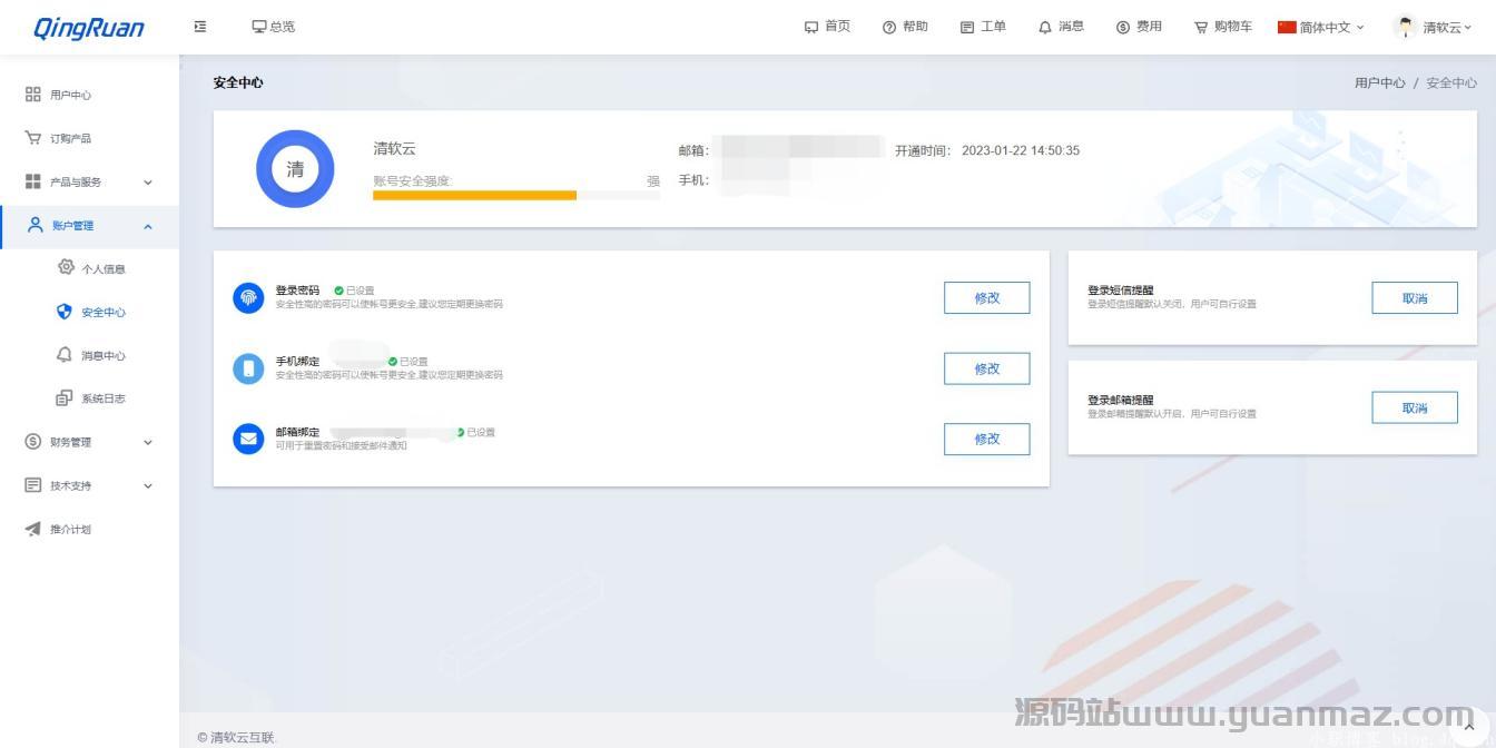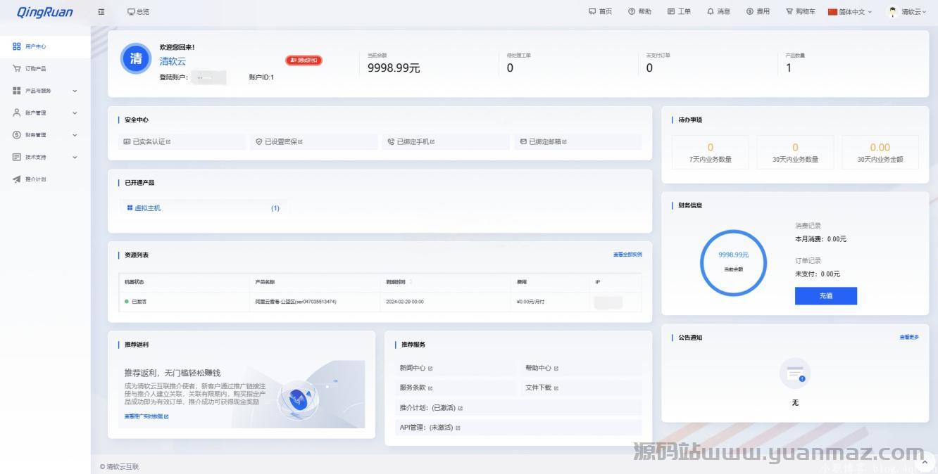 QRuser用户中心主题-魔方财务3.5.7专用模板,三端自适应多语言企业版