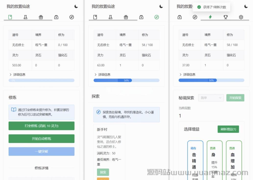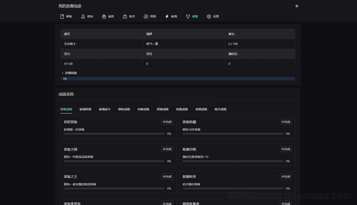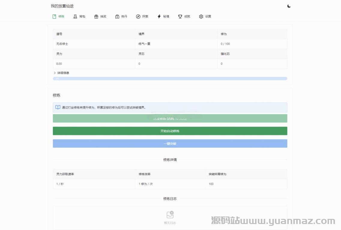我的放置仙途-修仙文字游戏源码-PC+H5自适应-带暗黑模式