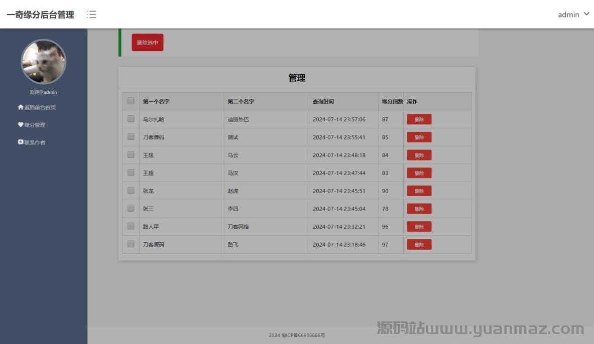 · 🛠️ 结果可操控:后台支持预先在数据库中设置任意两个姓名的“缘分值”,掌控测试结果。