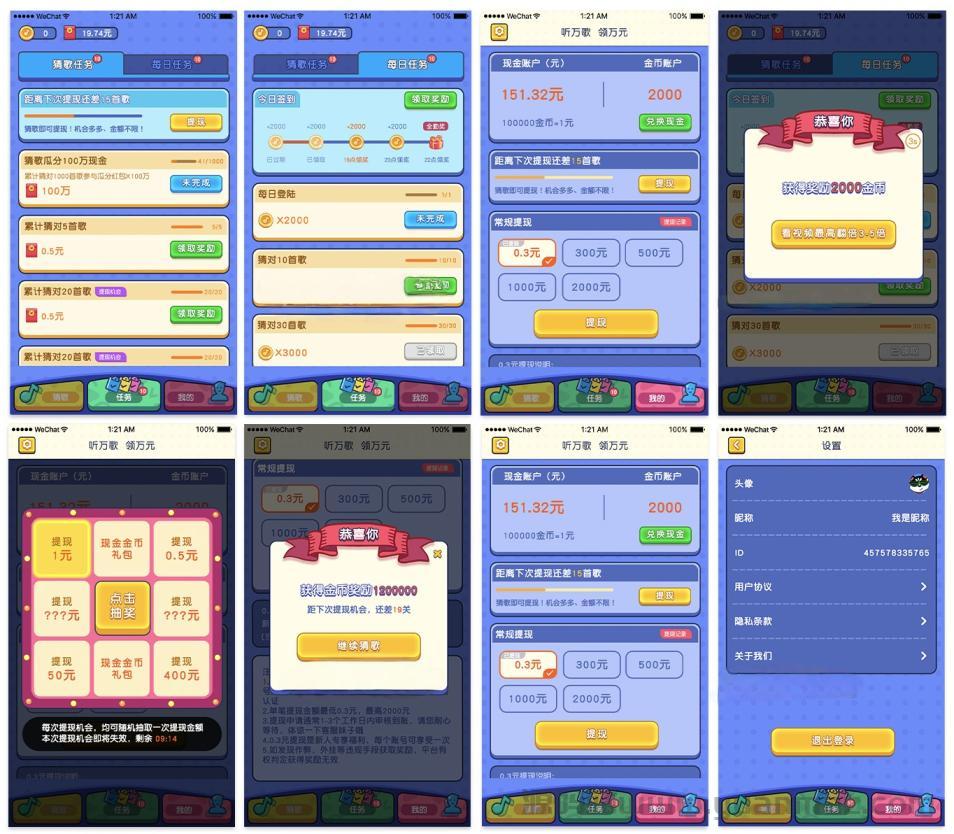 · 🪙 金币积累系统:通过猜歌、拆红包、日常任务收集金币,达到指定数量可兑换现金