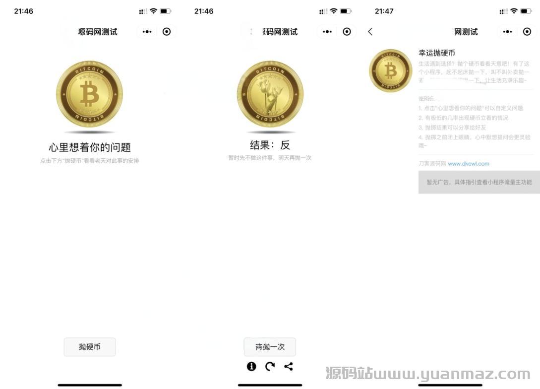 🎯 程序简介:抛硬币小游戏微信小程序源码