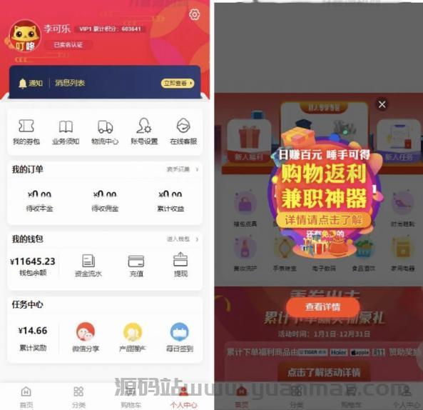 一款基于 PHP 后端与 VUE 前端构建的全开源、高性能电商系统。它创新性地将 返佣商城、裂变分销 与 理财增值 三大模块融为一体,为您打造一个功能强大的多元化商业平台。