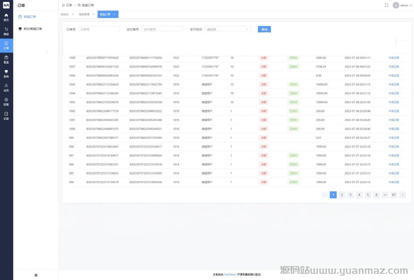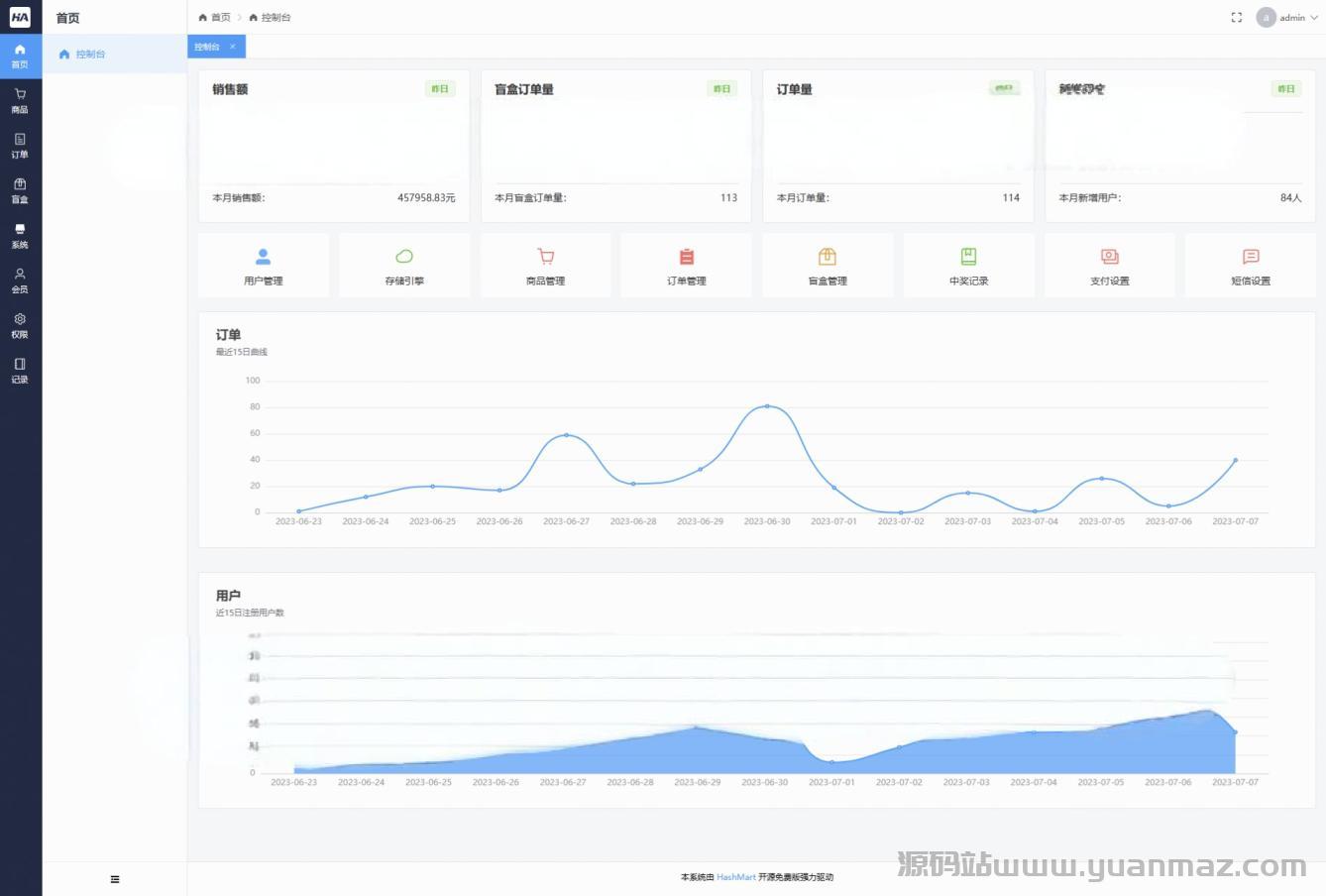 · 精心设计的后台管理框架,覆盖 首页看板、商品管理、订单管理、盲盒管理、系统管理、会员管理、权限管理、记录管理 八大核心模块