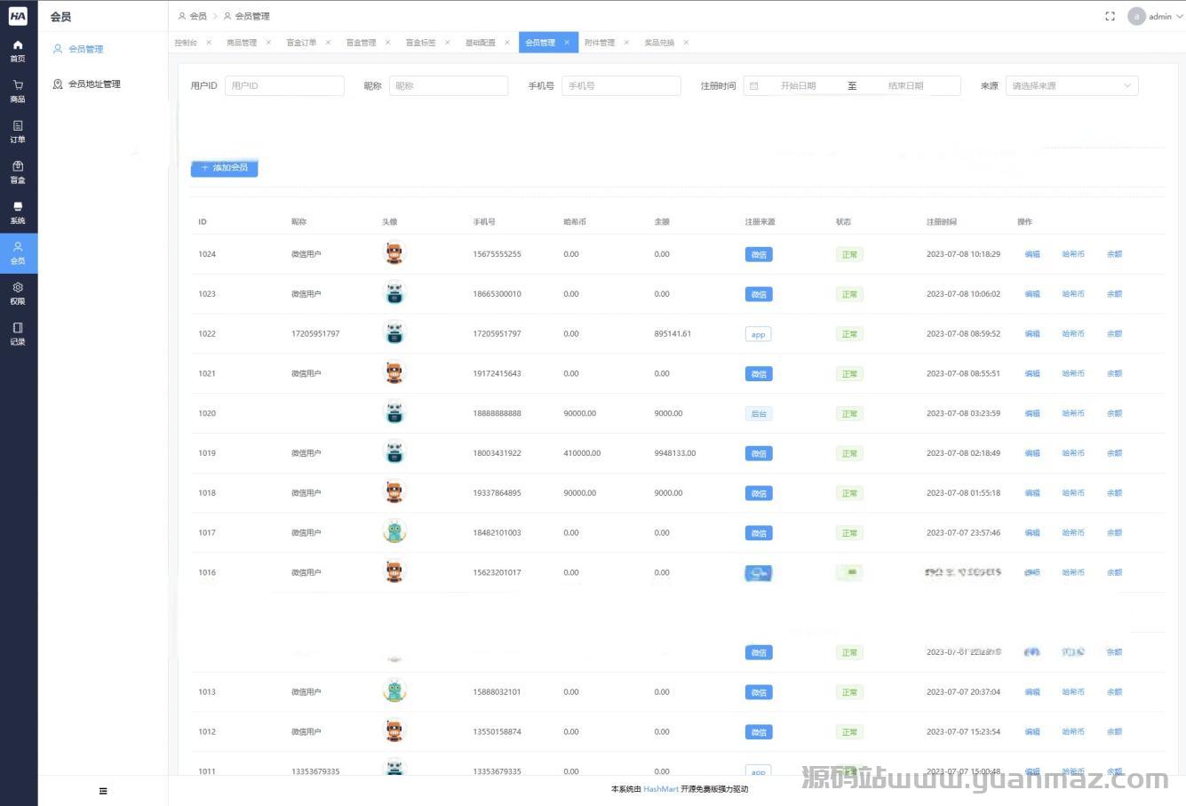 HashMart(哈希玛特)是业界首款完全开源、面向生产环境的高性能盲盒解决方案。该系统集成了从商品、订单、会员到权限的全方位管理功能,具备极佳的易开发特性,是助力盲盒业务快速上线与规模化运营的理想选择。