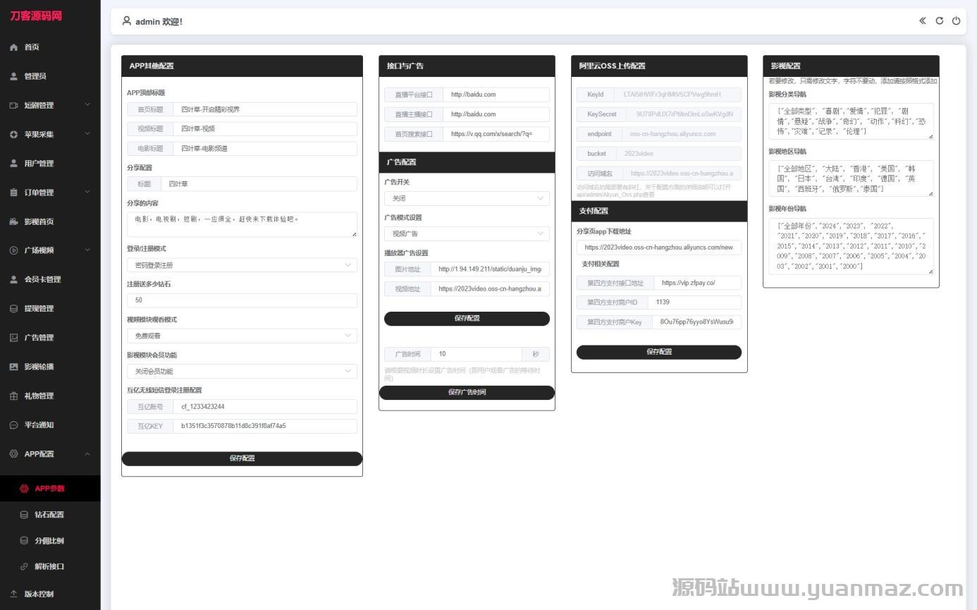 · 本系统中的苹果cms主要用于影视内容的采集与管理,是平台内容的基石。