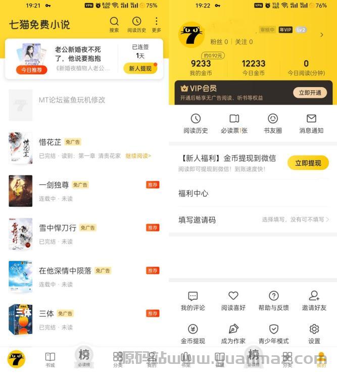七猫免费小说v7.83.5去广告会员版:热门小说免费读,看书赚钱无广告干扰