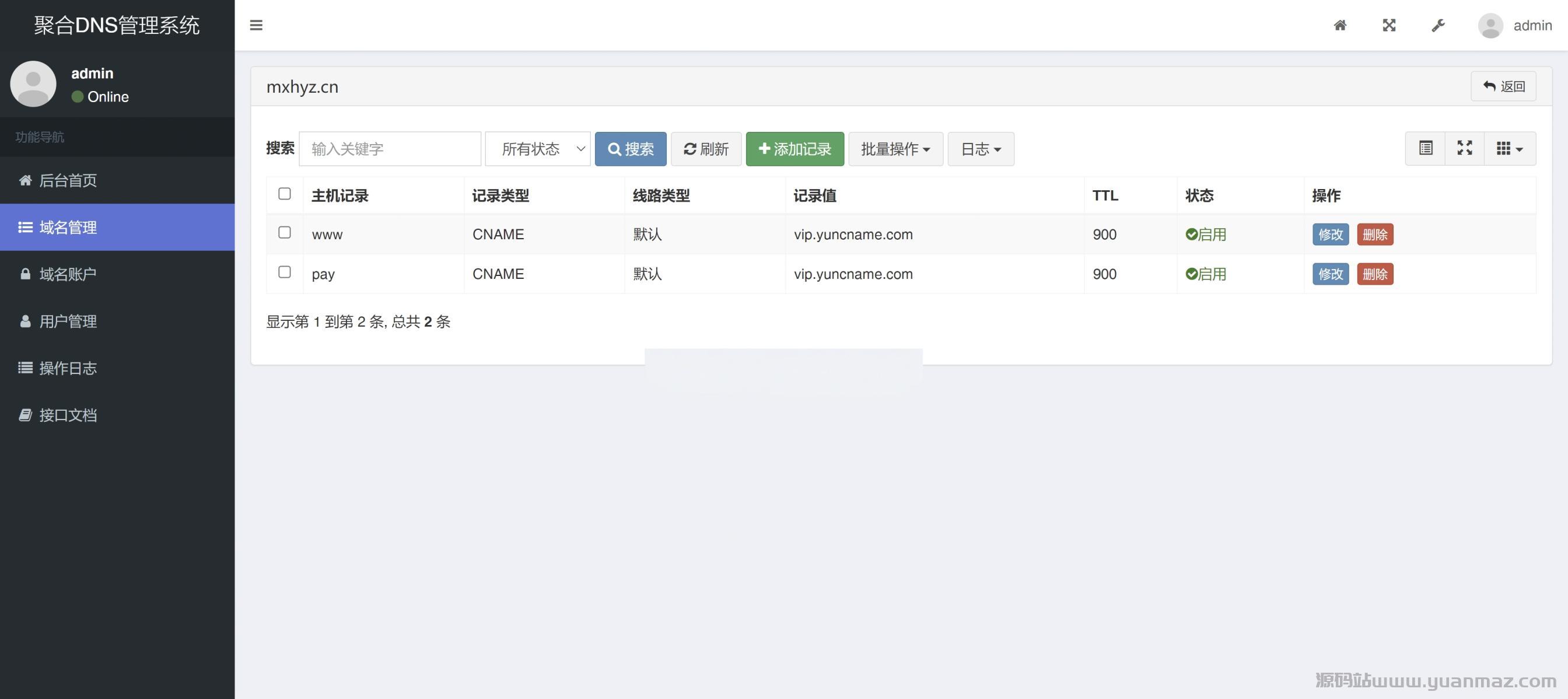 彩虹聚合DNS管理系统v1.3源码-支持多平台域名解析开源系统