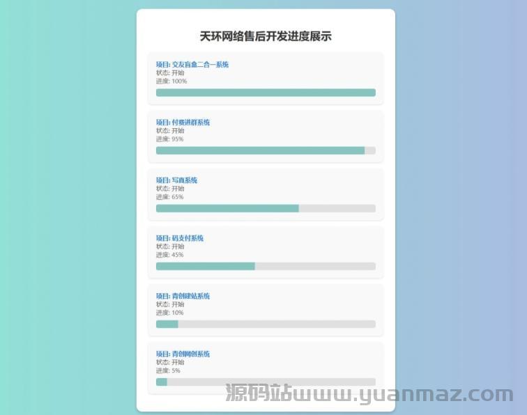 一款原创的项目开发进度展示与管理系统,采用独特的免数据库架构,部署简易,适合用于项目跟踪、进度公示或团队协作展示。