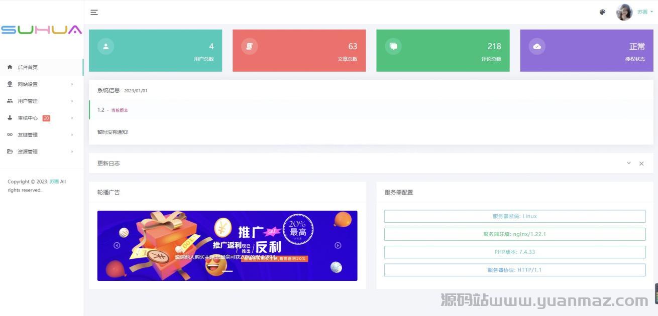 支持发布音乐 支持日夜模式、搜索功能、回到顶部 支持游客点赞及评论 可开启用户发布文章及评论审核(防止用户发布恶意内容)可管理全站用户支寺图片上传自动压缩大小 更多功能可自行探索!