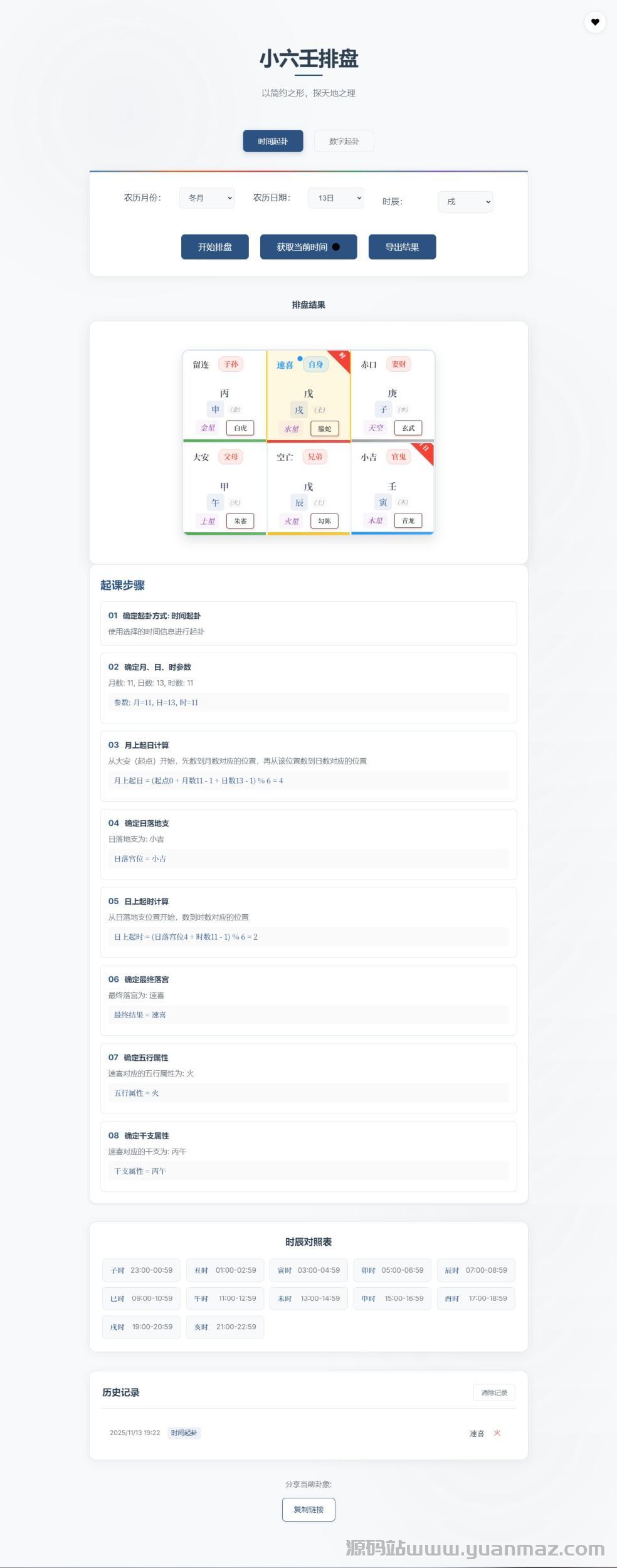 小六壬排盘工具源码-自适应双端JavaScript占卜网站开源